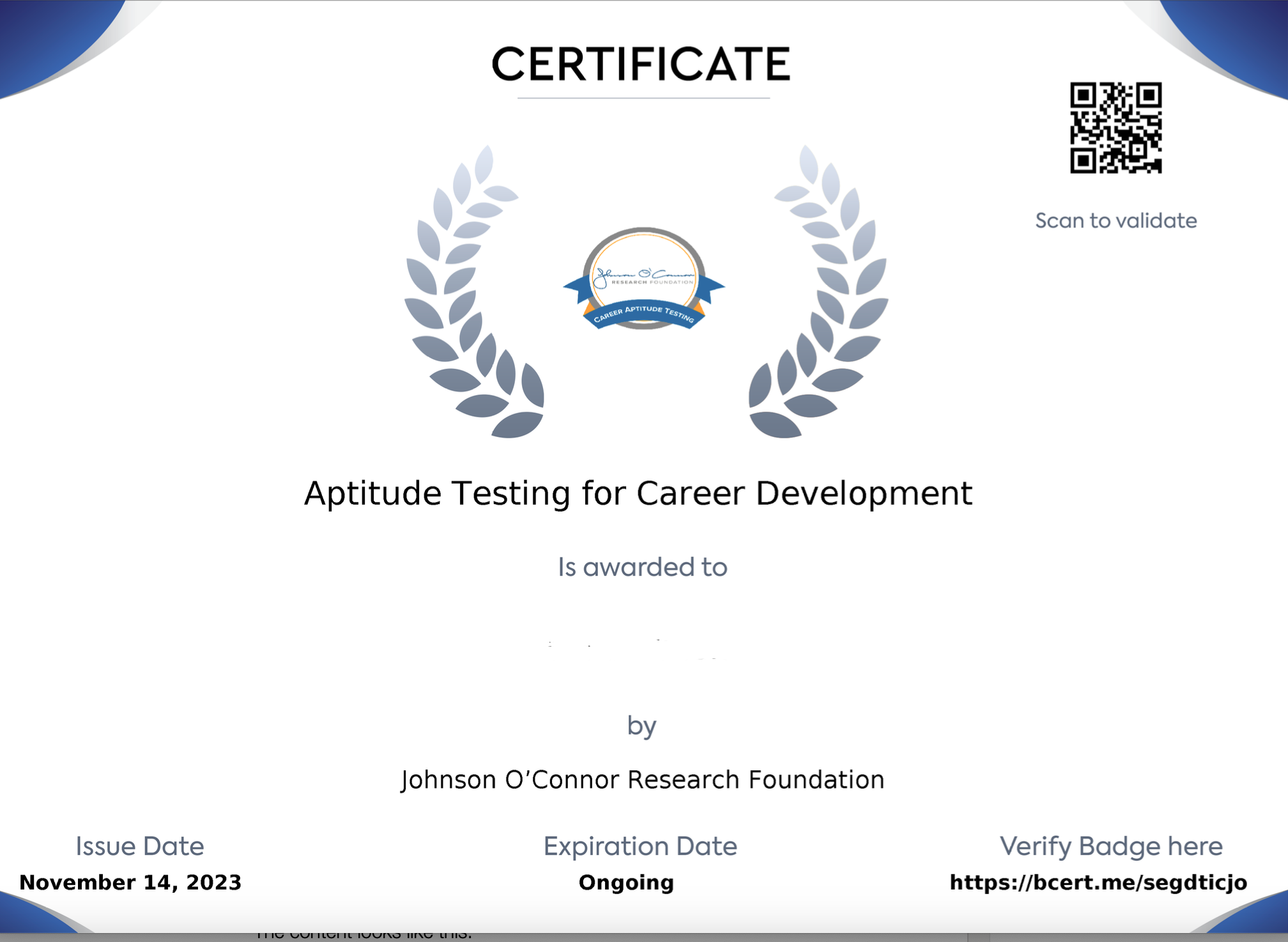 Many professional development stipends can be used for coaching or career counseling services. While the Johnson O’Connor Research Foundation doesn’t offer traditional career counseling, our testing does provide self-exploration, career guidance, and data for career planning. We’ve had many clients use their stipend funds to cover the test fee.